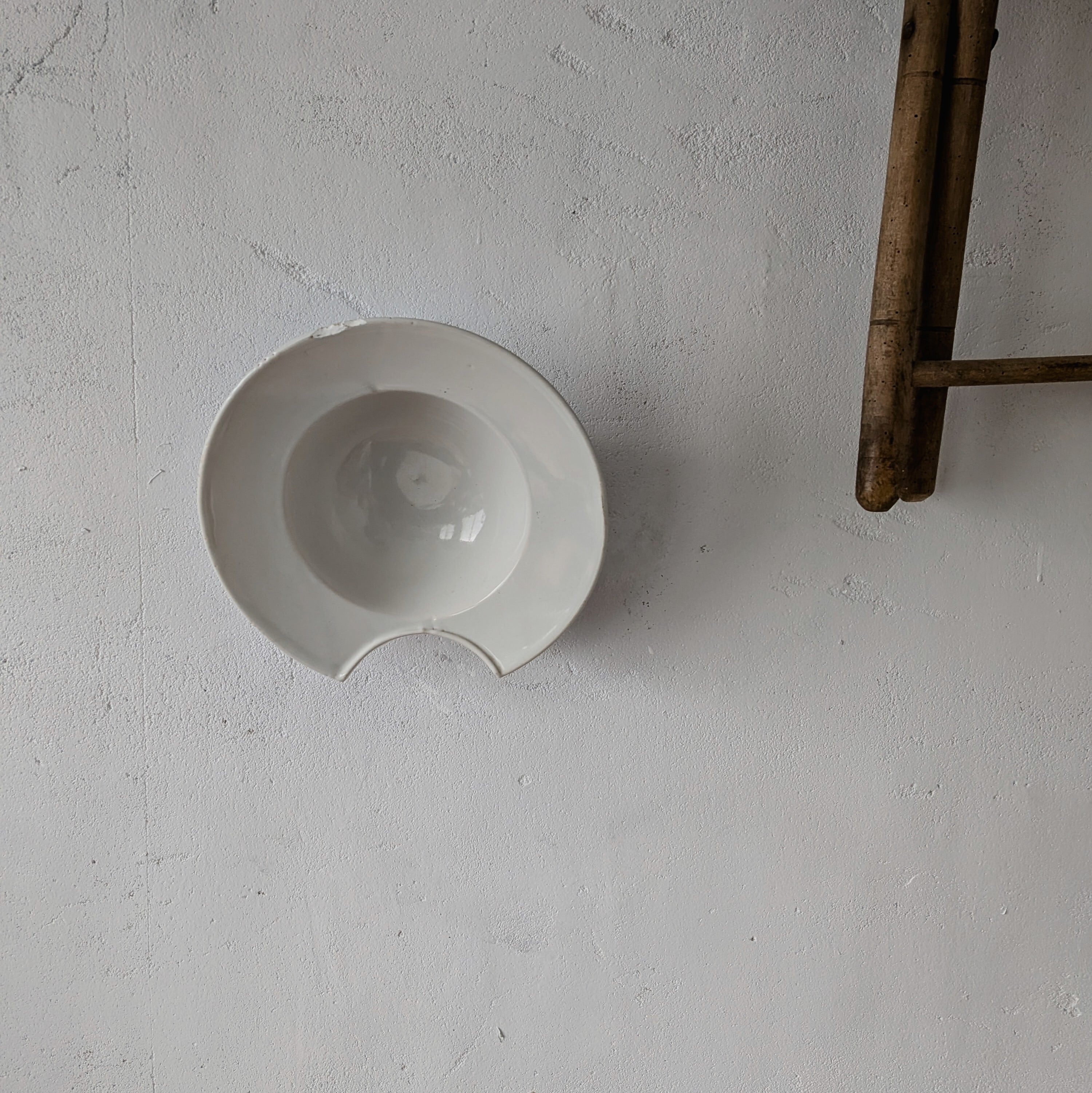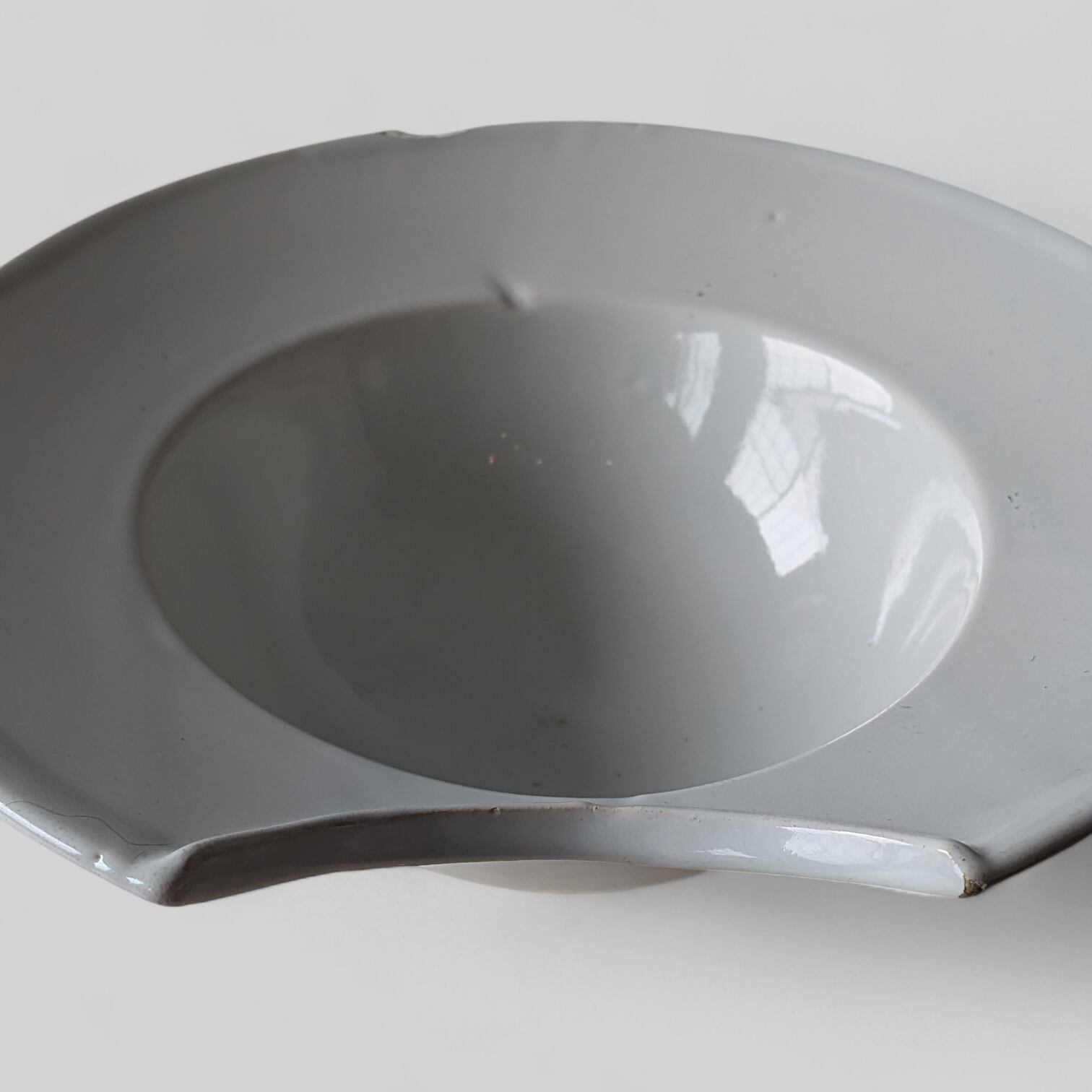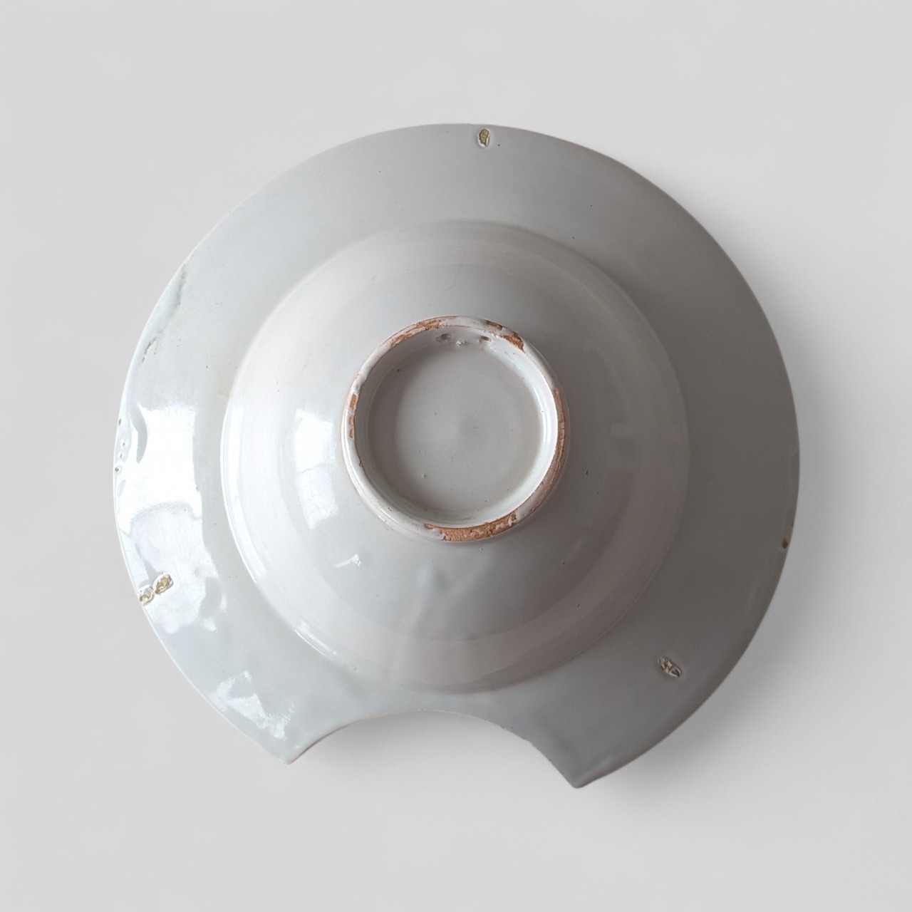 フランス18世紀後半〜19世紀初頭の「髭皿」と呼ばれる白釉のシェービング用の陶器皿。