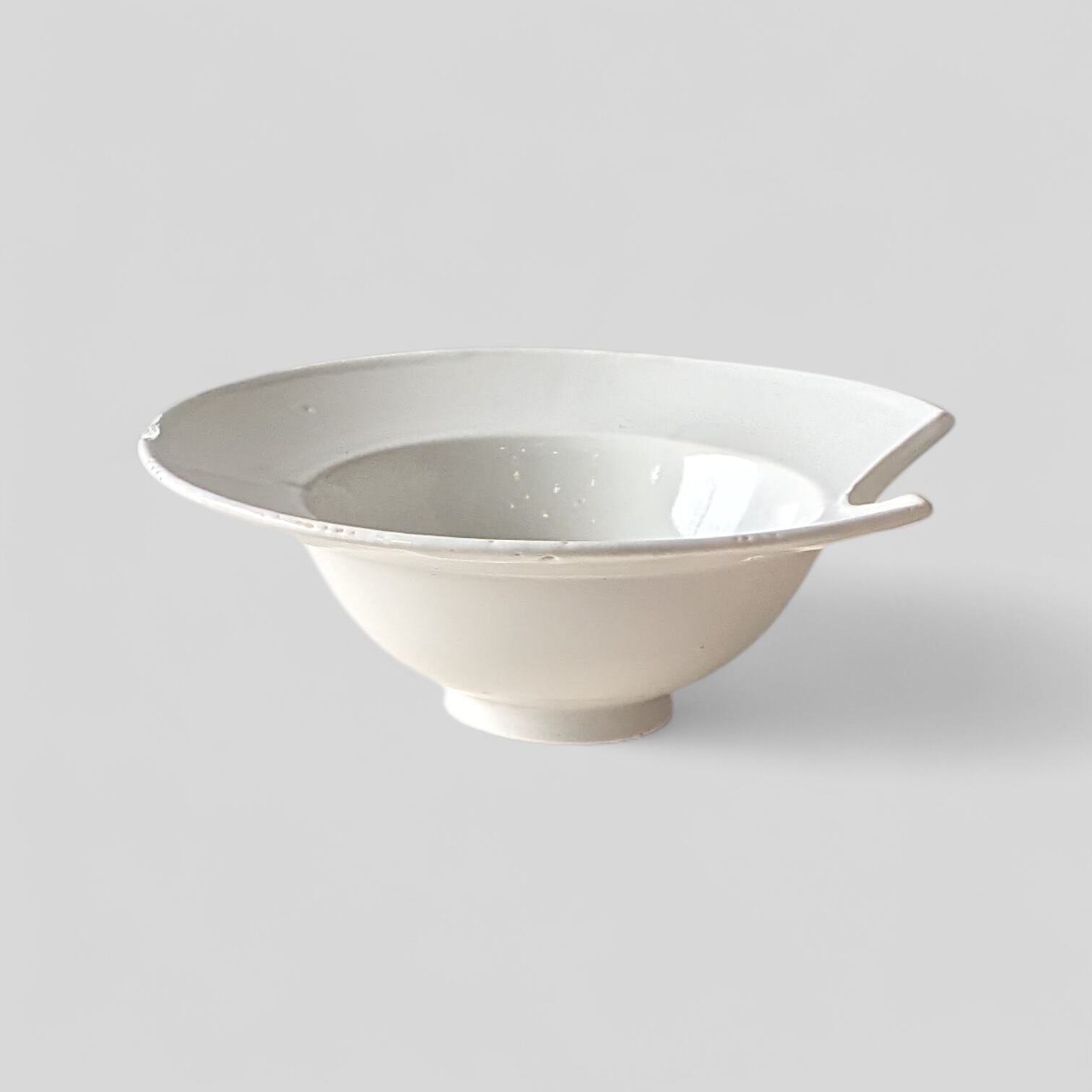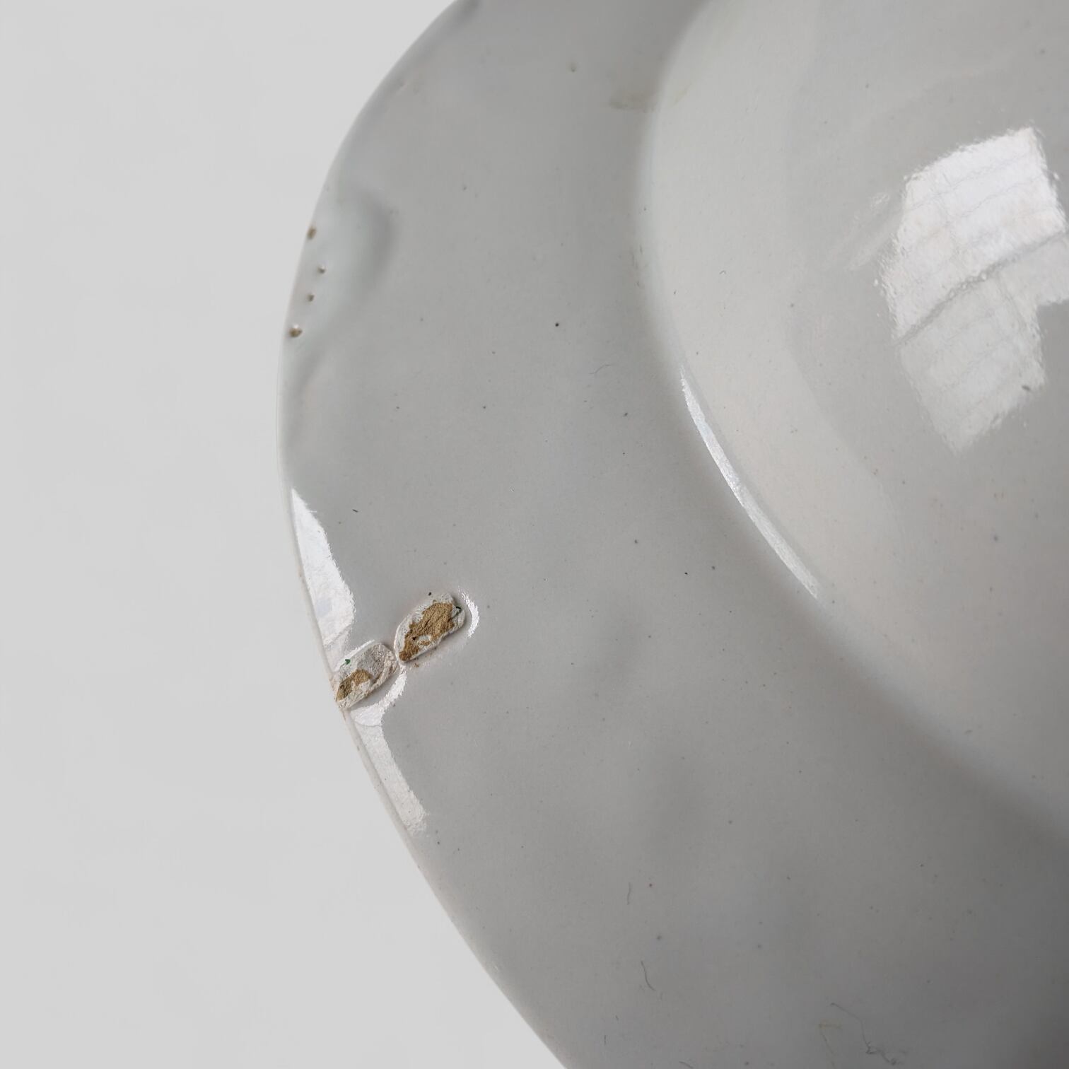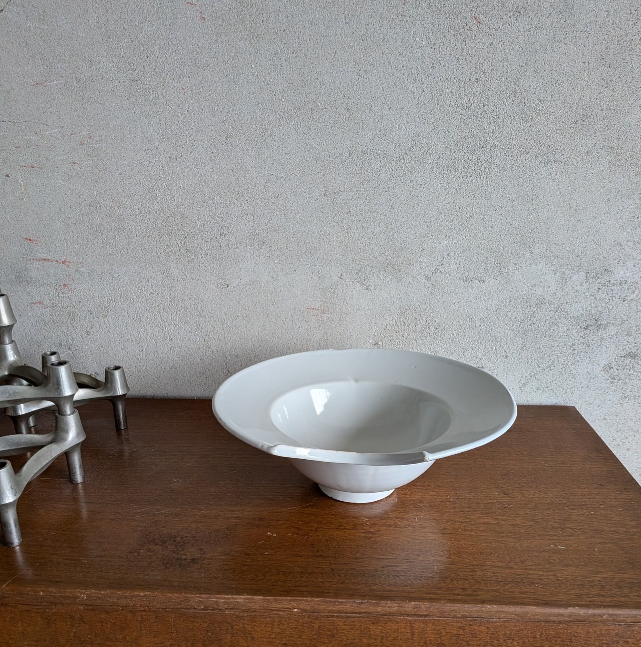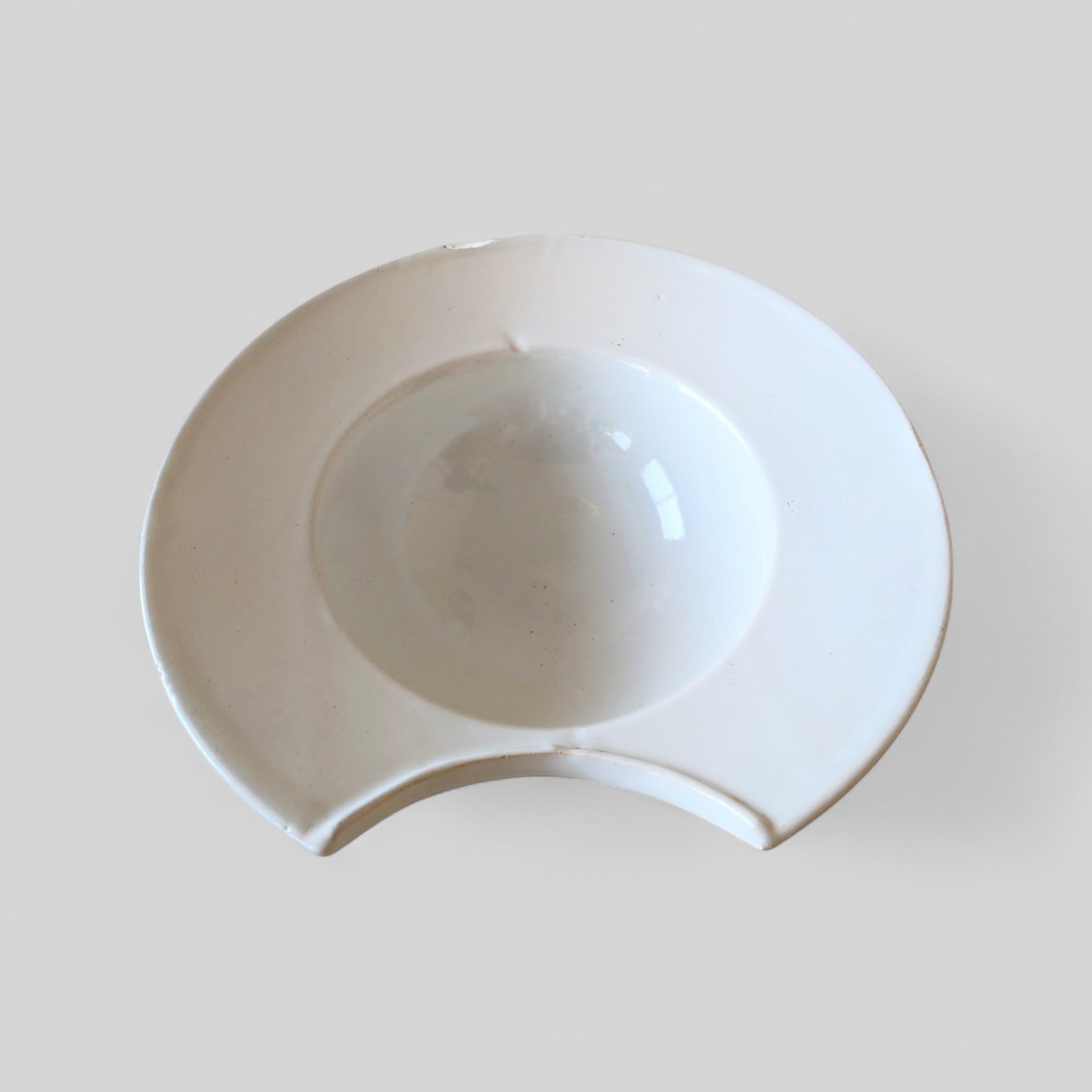 フランス18世紀後半〜19世紀初頭の「髭皿」と呼ばれる白釉のシェービング用の陶器皿。