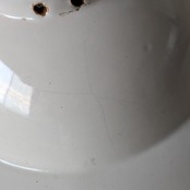縁に欠け、裏面に目跡あり。裏面に薄い貫入有り。