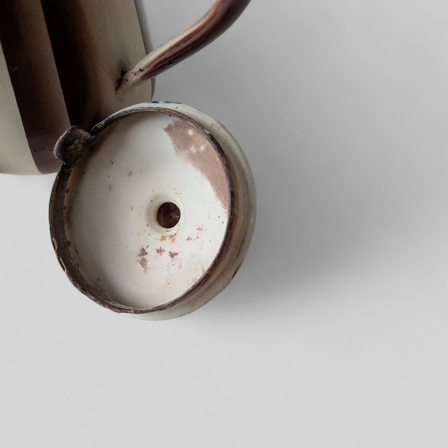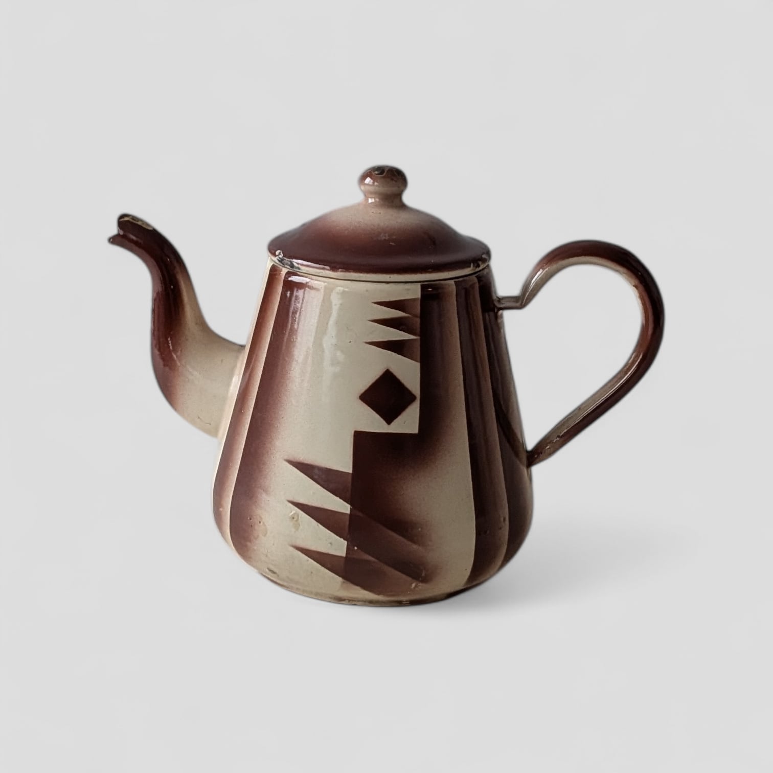 ベルギーのアンティークマーケットで仕入れたアールデコデザインのホーローのポットです。