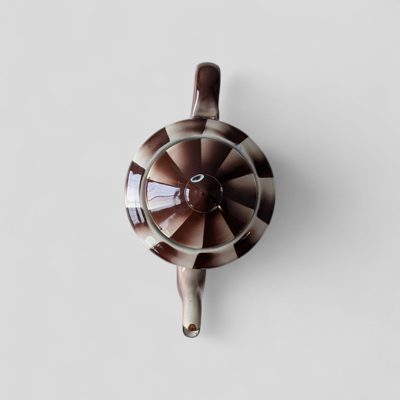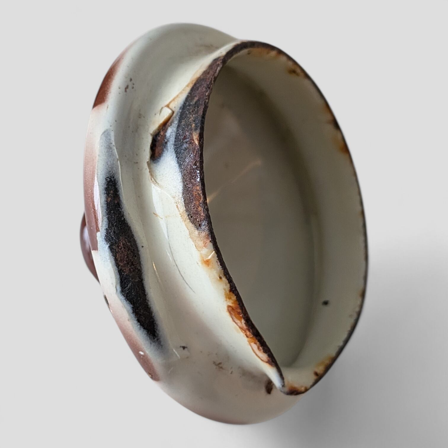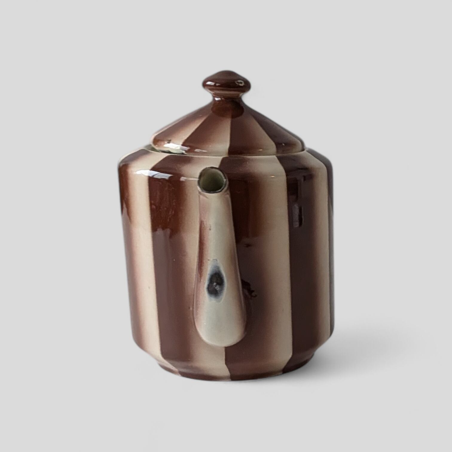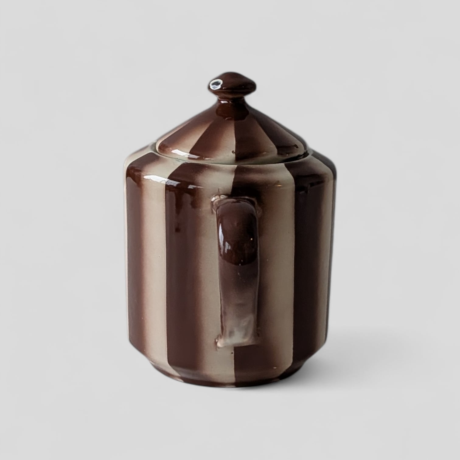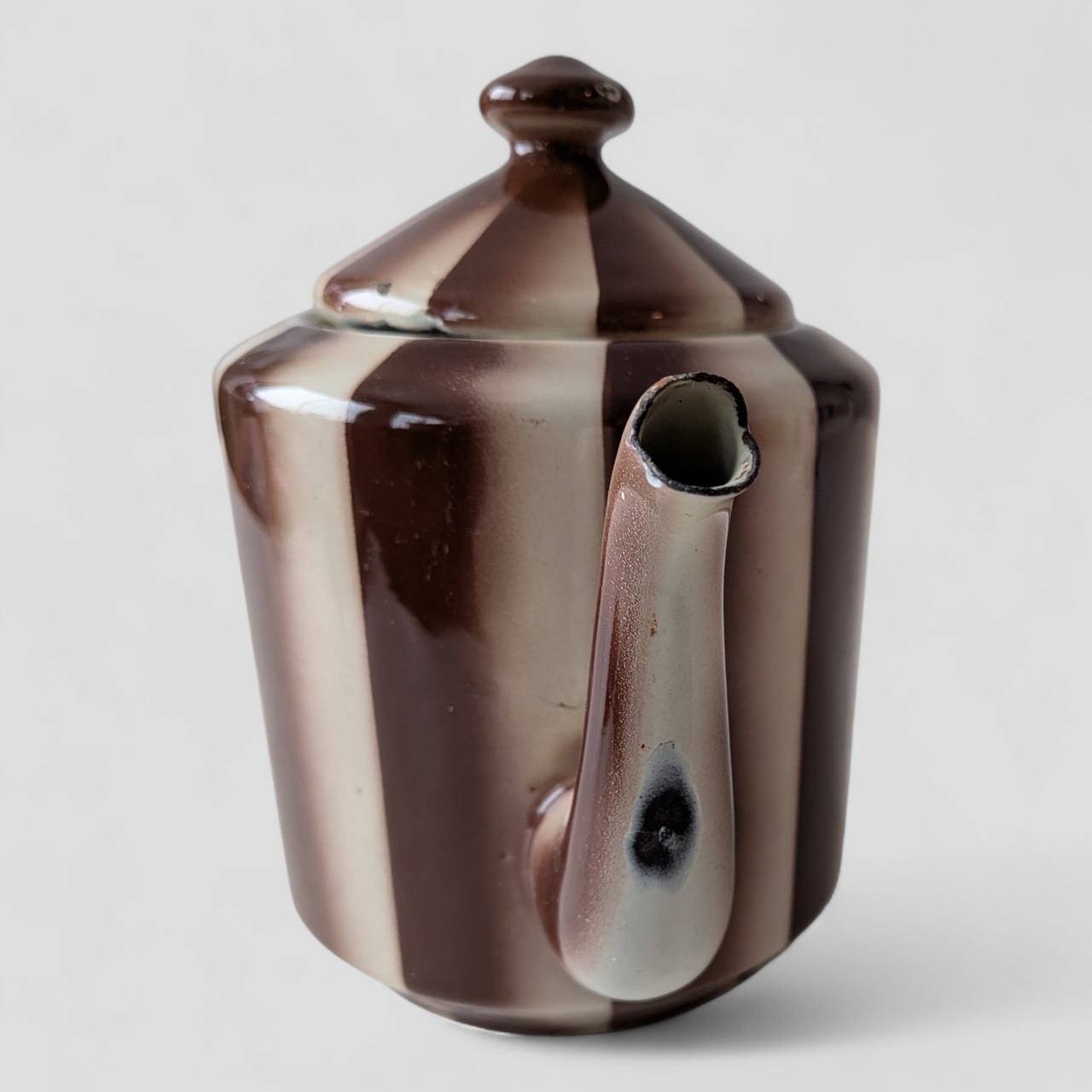 茶色+クリーム色のストライプは釉薬を吹き付けて加工しているため、境目がぼやけたアンティークにしかない味わいがあります。
