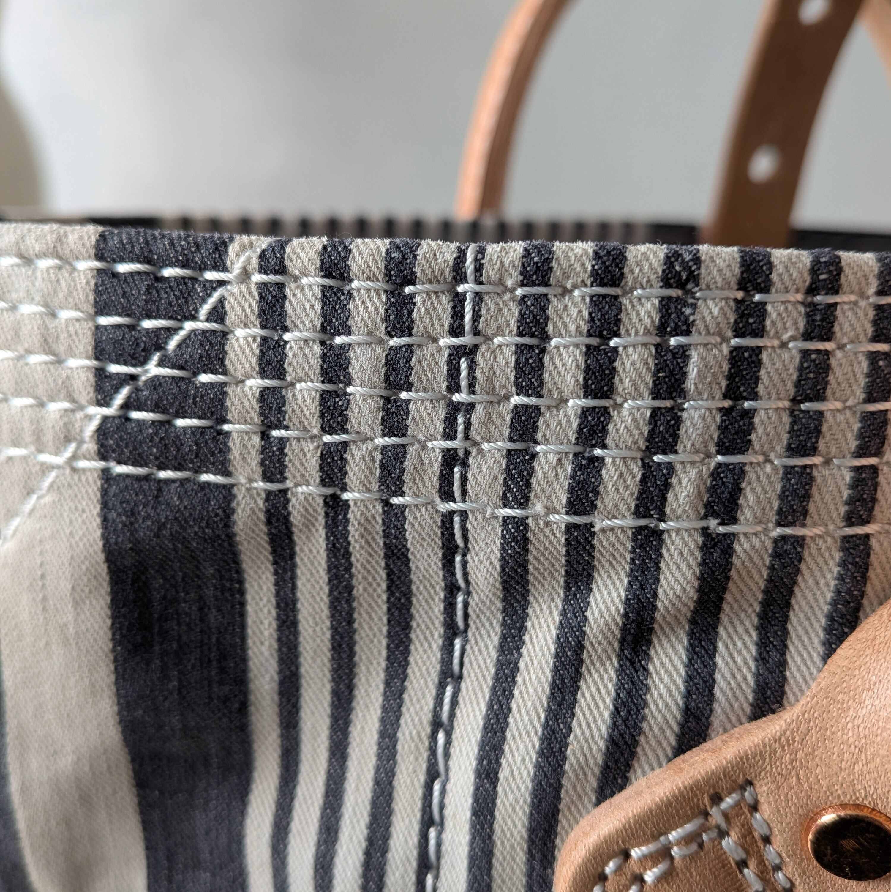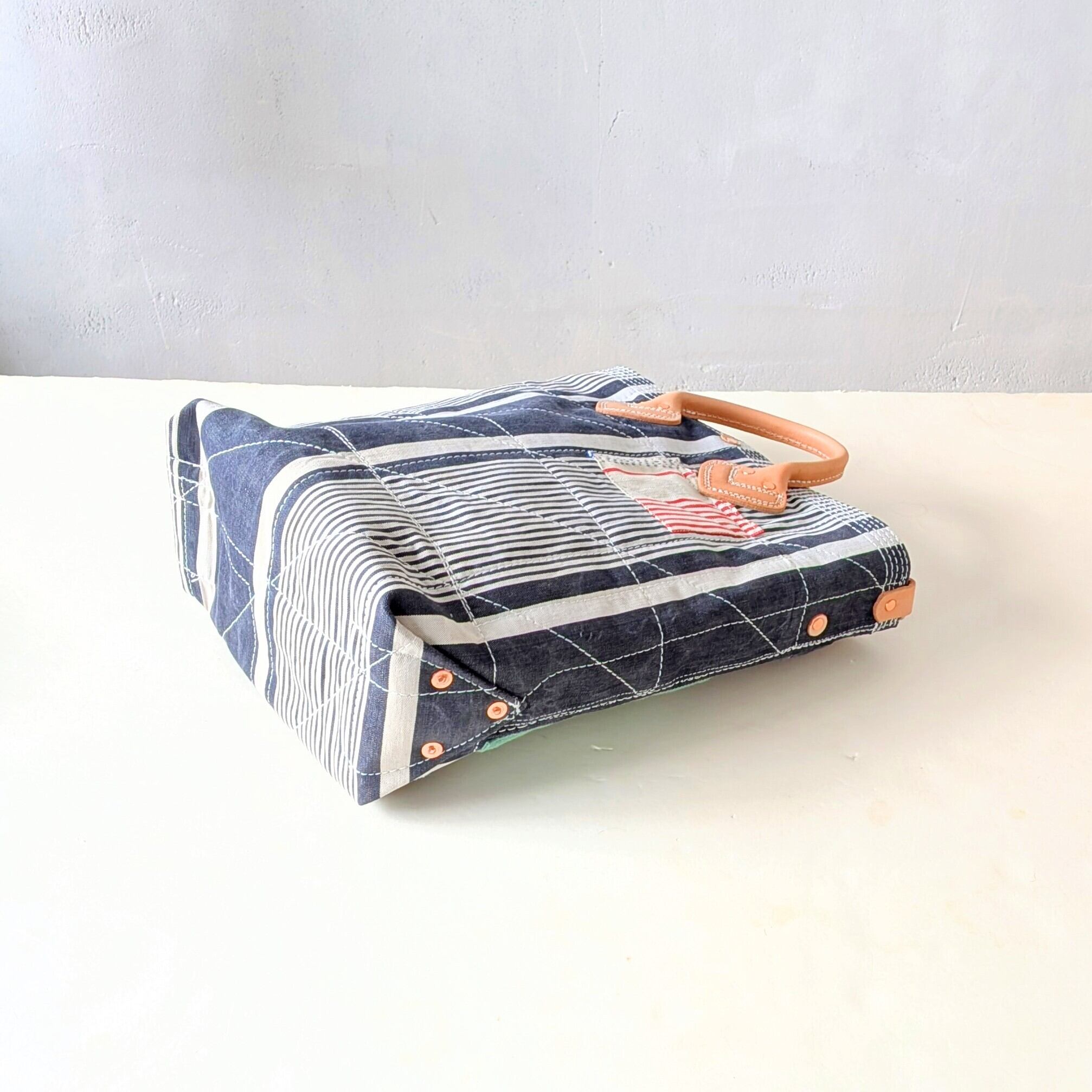 FRENCH TICKING FABRIC REMAKE TOTEBAG "A"