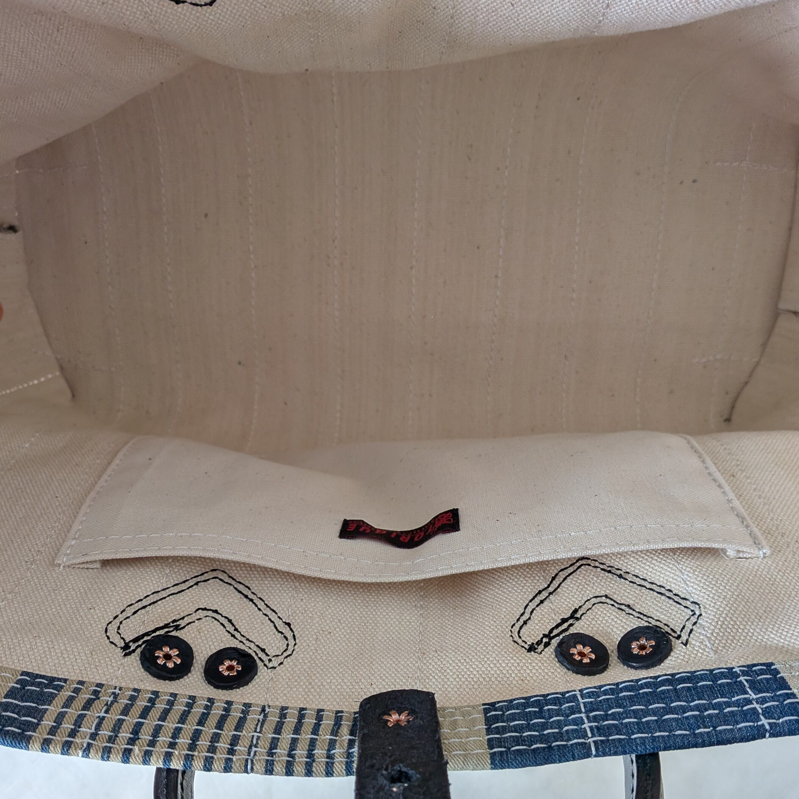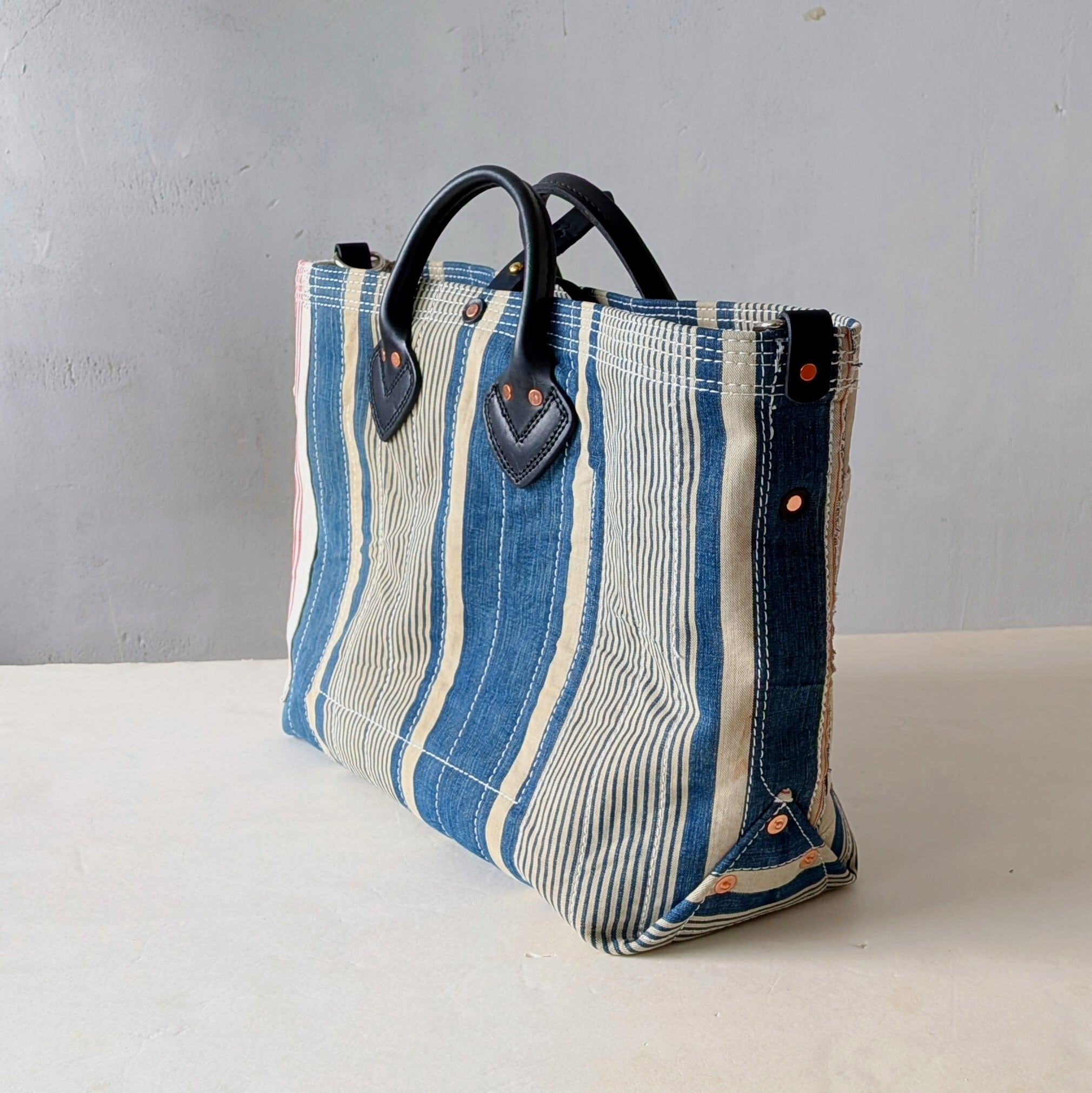 FRENCH TICKING FABRIC REMAKE TOTEBAG "D"