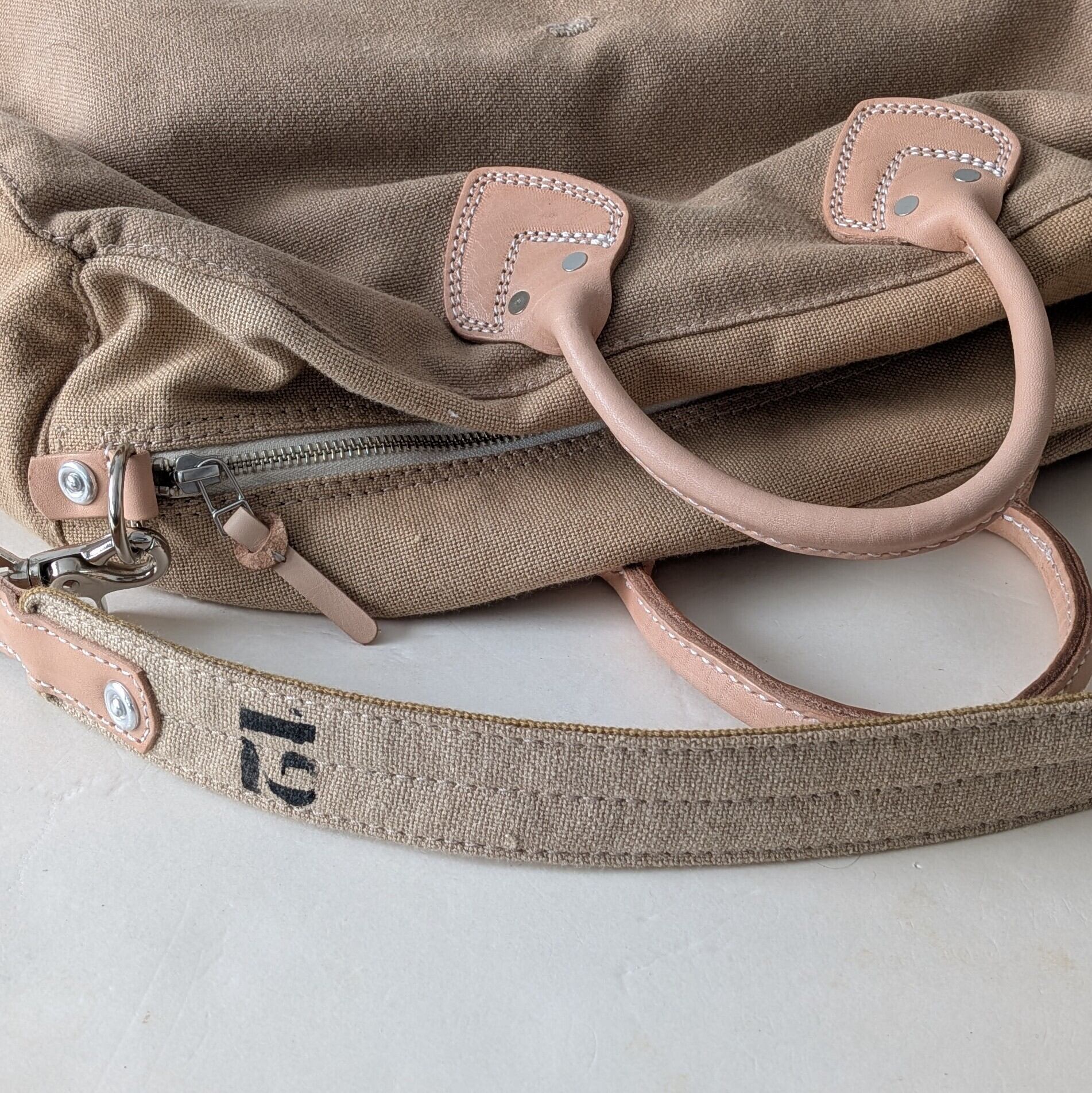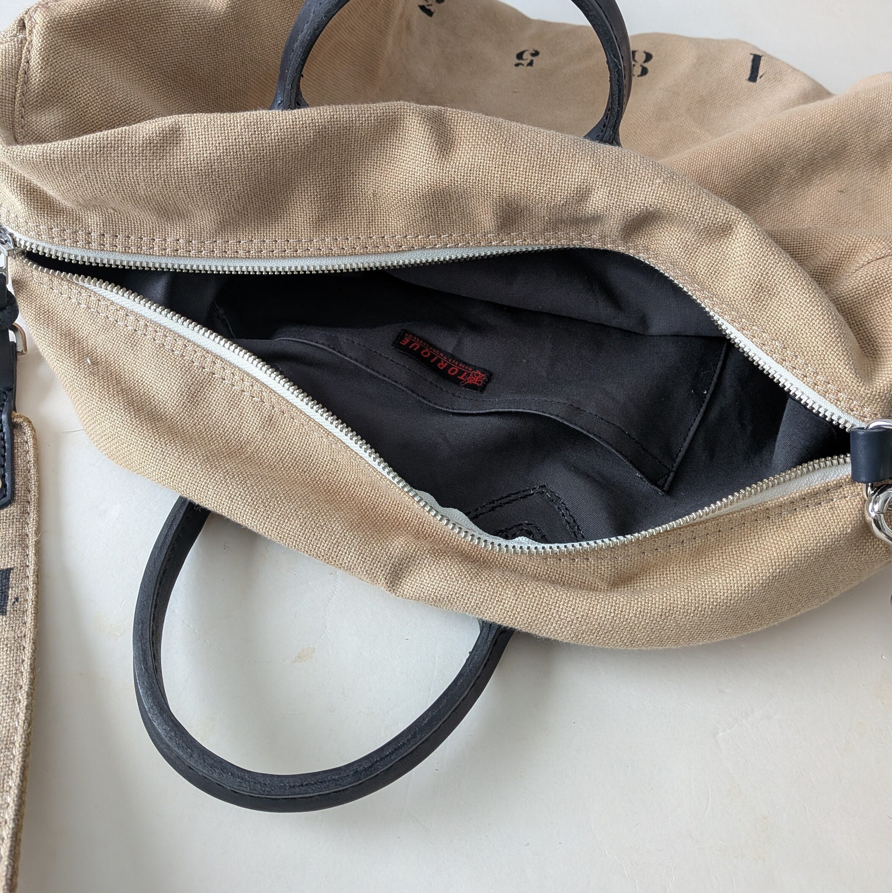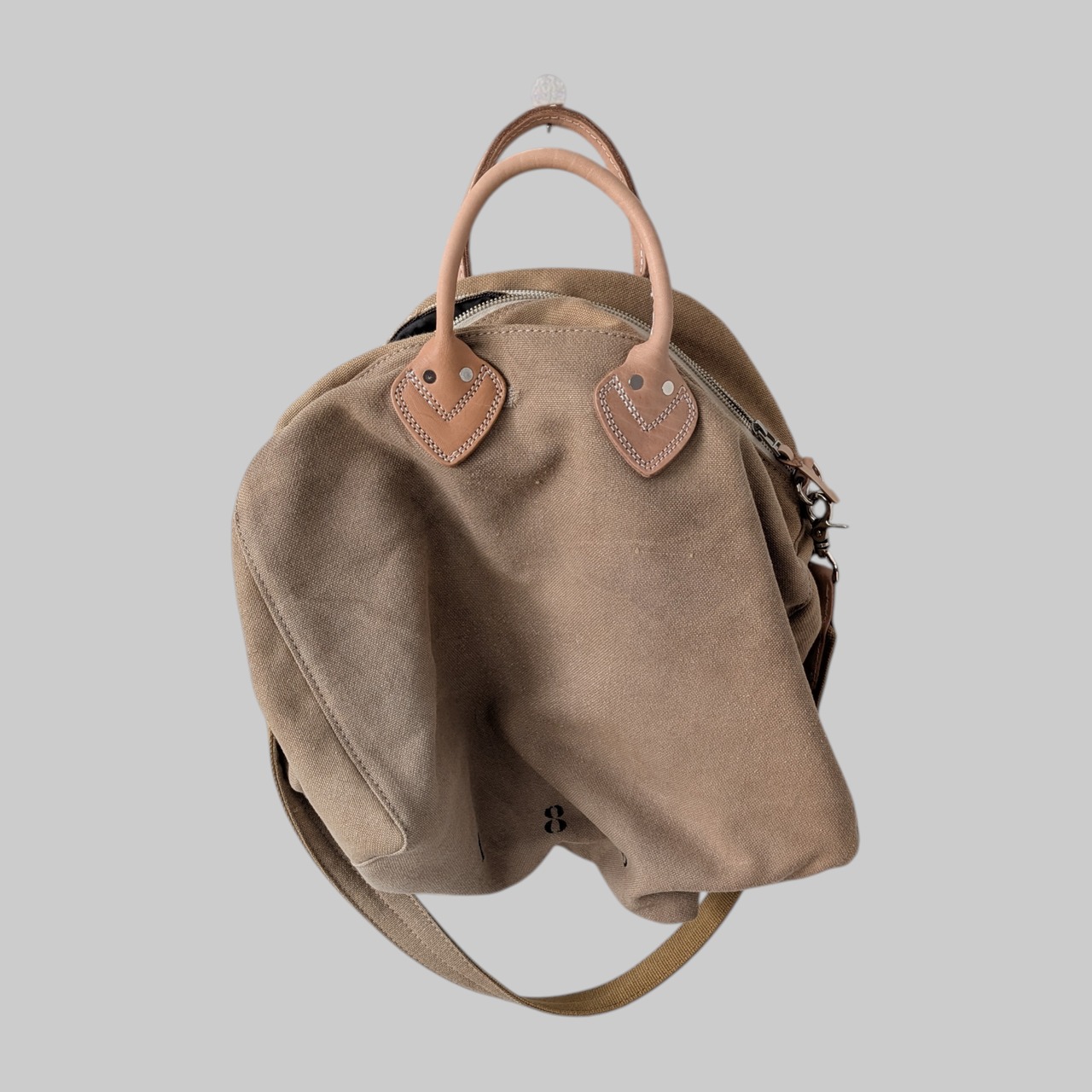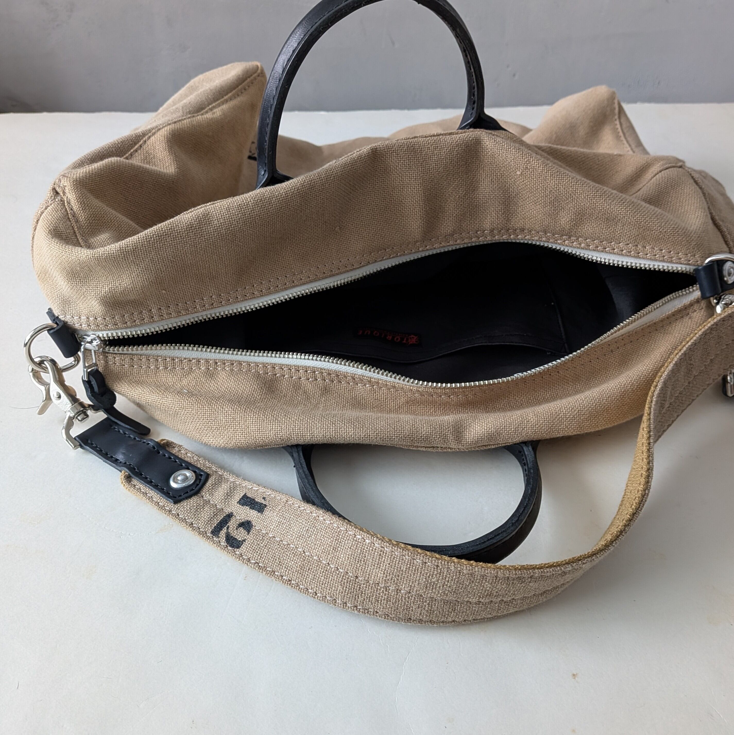 ナンバー"1853"と"12"をさりげなくステンシルで施し、個性的なデザインを演出しています。ハンドルや各パーツには高品質なレザーを使用しており、使い込むほどにその魅力が増していきます。取外し可能なショルダーストラップ付きで、便利にお使いいただけます。