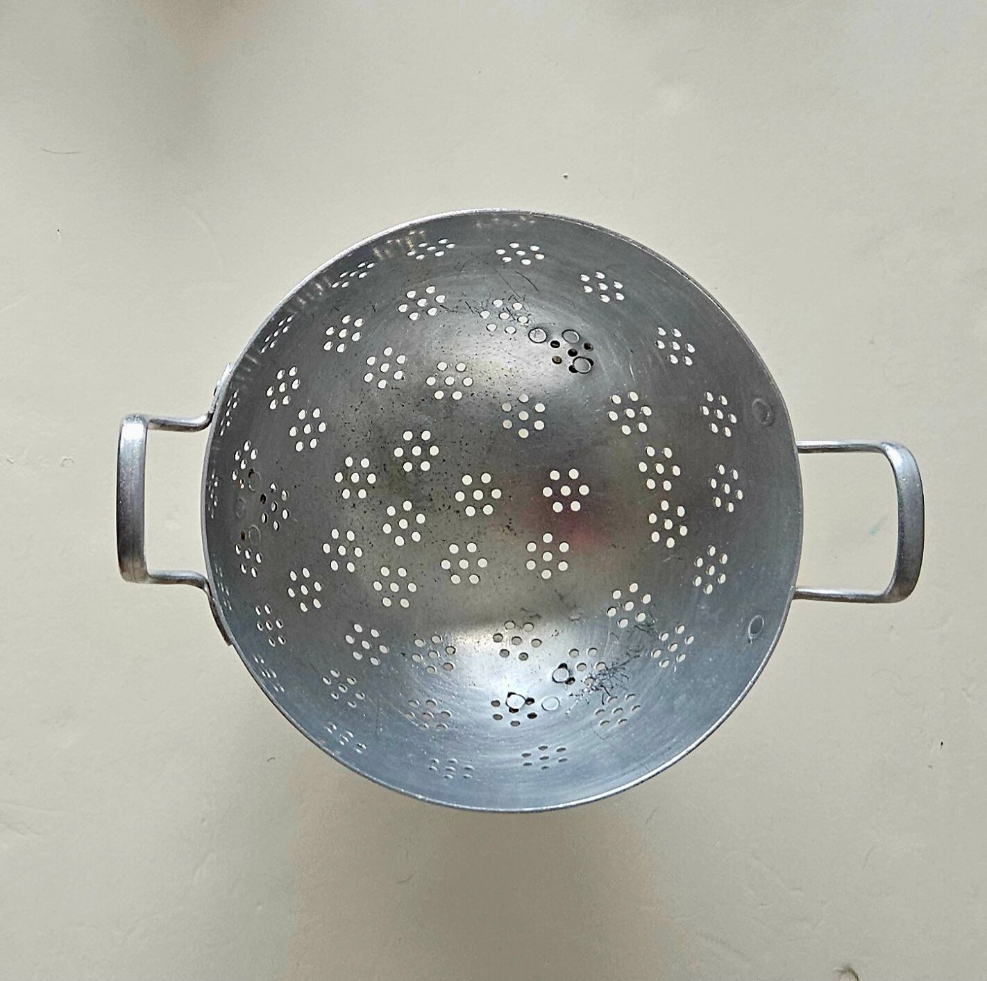 フランスからやってきた古いアルミのコランダー。