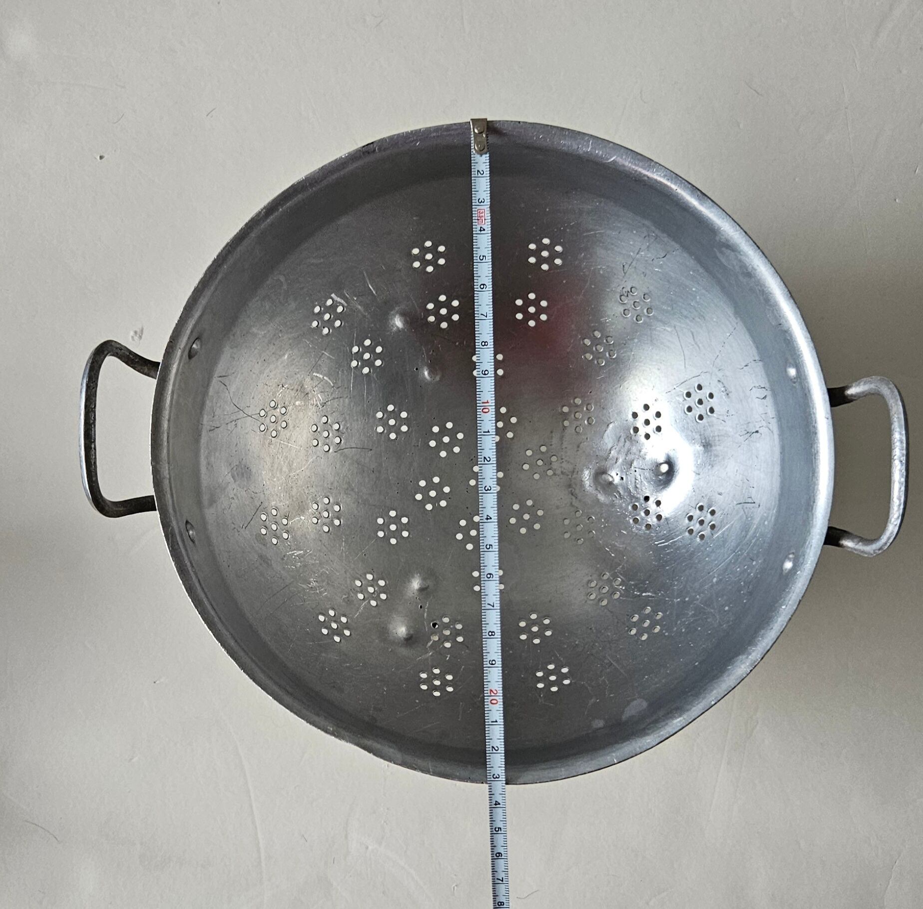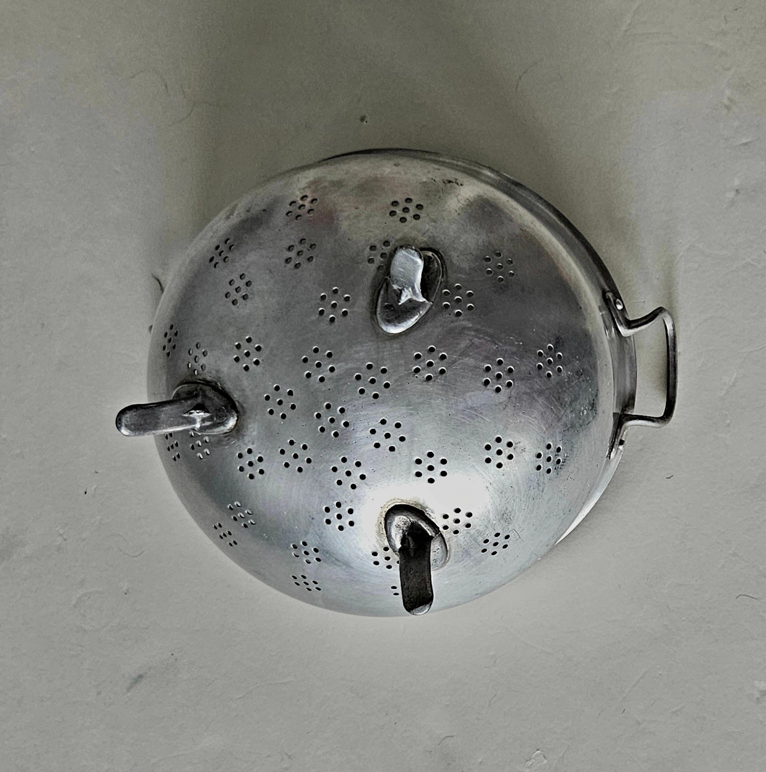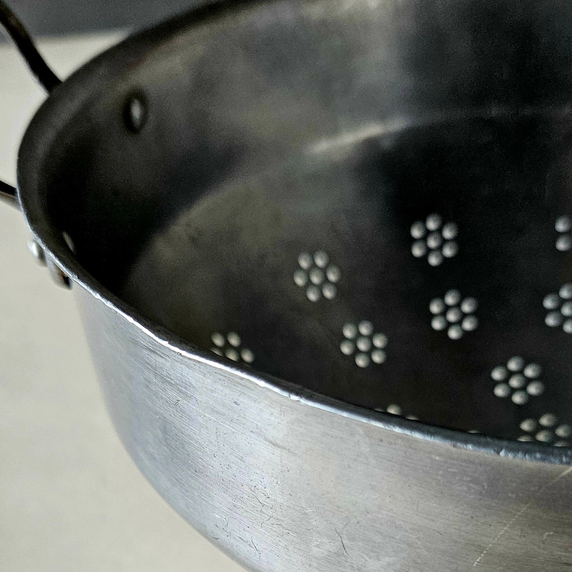フランスからやってきた古いアルミのコランダー。
